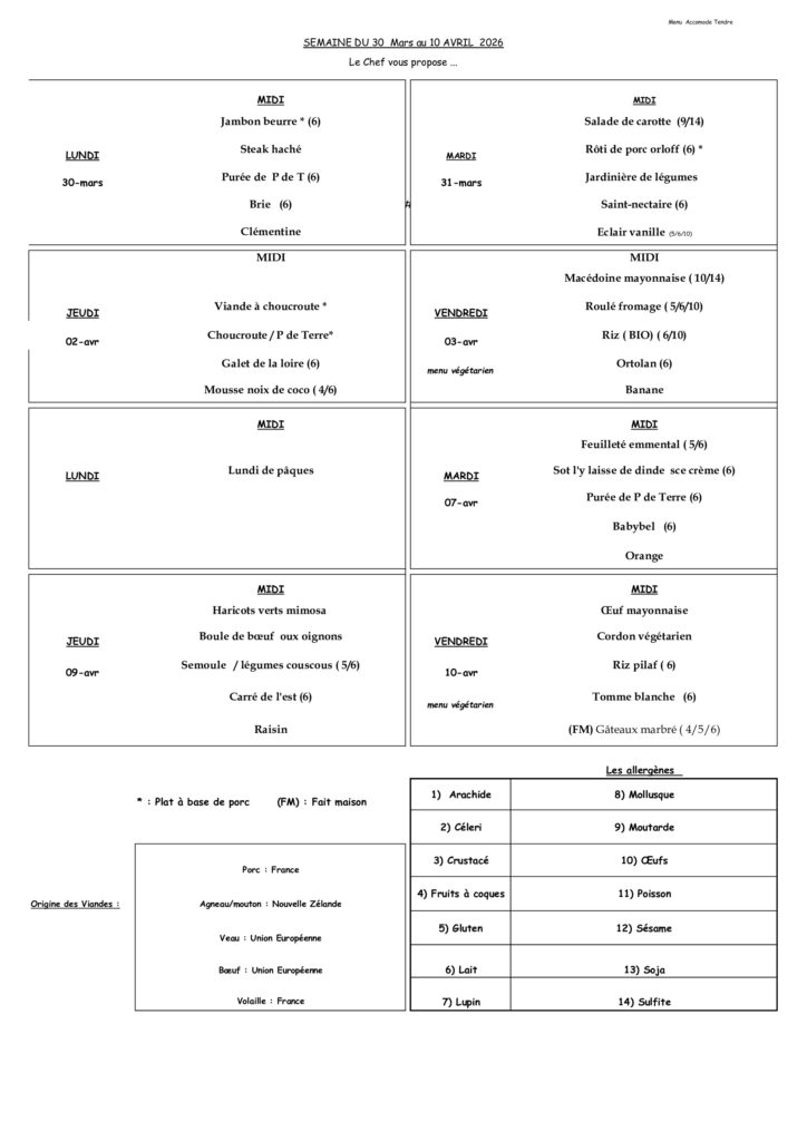 Menu Cantine du 30 mars au 10 avril 2026 Home / Documents / Attachments Menu-ecole-du-16-au-27-mars.pdf File size: 337 kB Menu-ecole-du-30-mars-au-10-avril.pdf File size: 354 kB