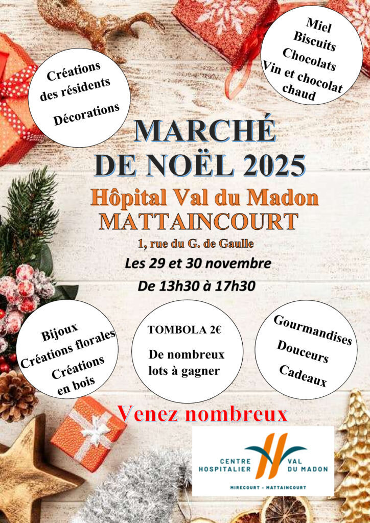 MARCHÉ DE NOËL – Hôpital du Val du Madon Home / Evénements / Start 29 novembre 2025 All-day Event End 30 novembre 2025 All-day Event